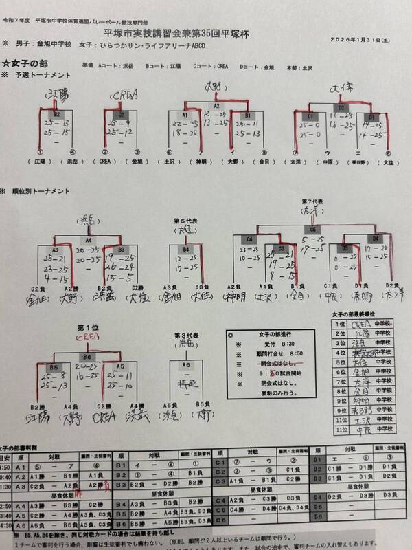 1月31日(土)金旭中学校(男子)ひらつかサン・ライフアリーナ(女子)